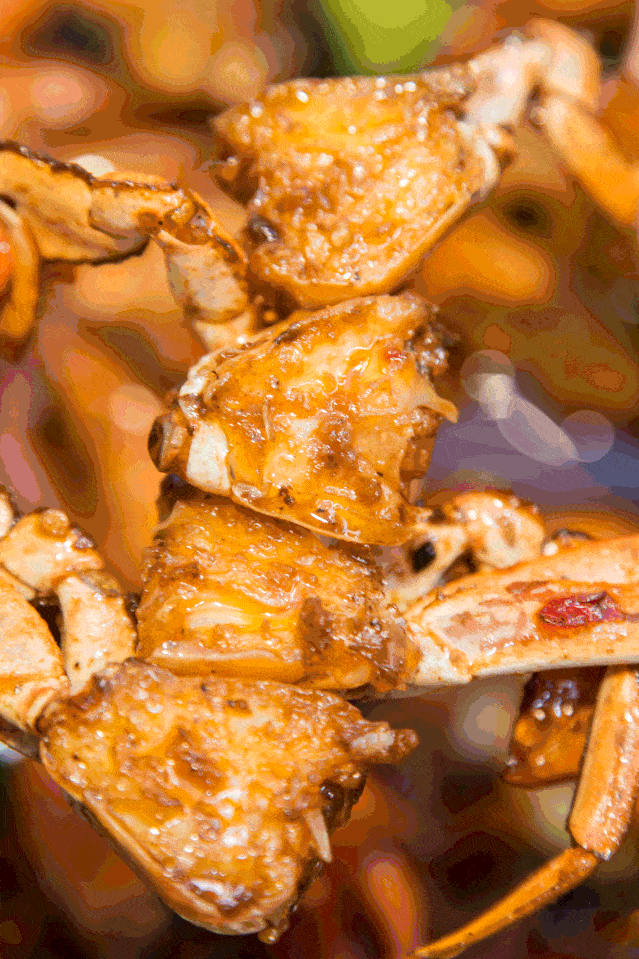 3. 炒狂蟹:将狂蟹清洗干净,切成块状,放入锅中,加入适量的料酒、生抽、姜片、葱段等调料,快速翻炒。炒狂蟹口感鲜嫩,味道鲜美,是一道简单易做的家常菜。